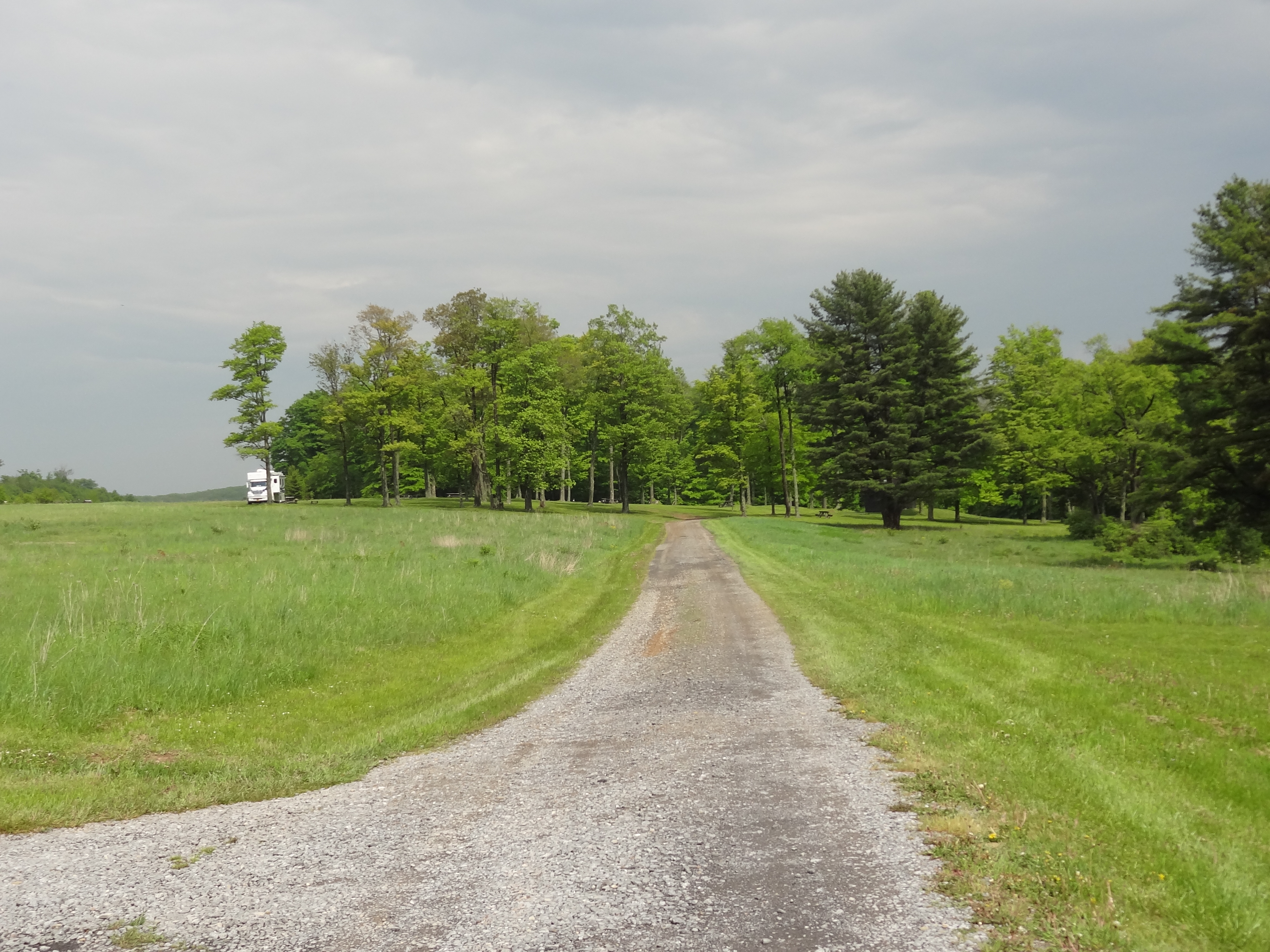 We finally arrived at the campground and found it..deserted!!!  This place operates on the honor system.  So, we wrote a check to the state of Pennsylvania, put it in the slot, and we were good to pick any site in the campground.  We took the high ground.