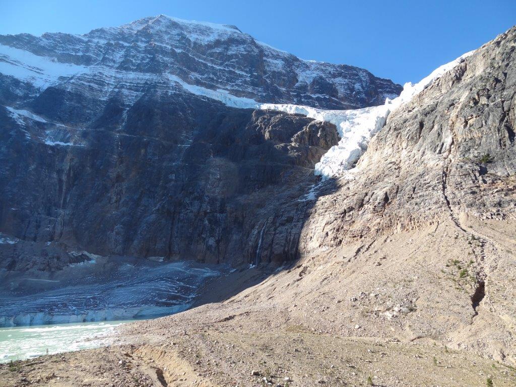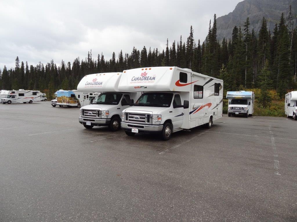 We knew from checking ahead that we could dry camp at the Icefield Visitor’s Center Parking lot.  So we did.  How often do you get to sleep at the foot of a glacier?  But by 7:00 the next morning, the altitude was bothering us, so it was time to further south and down in altitude to Banff.