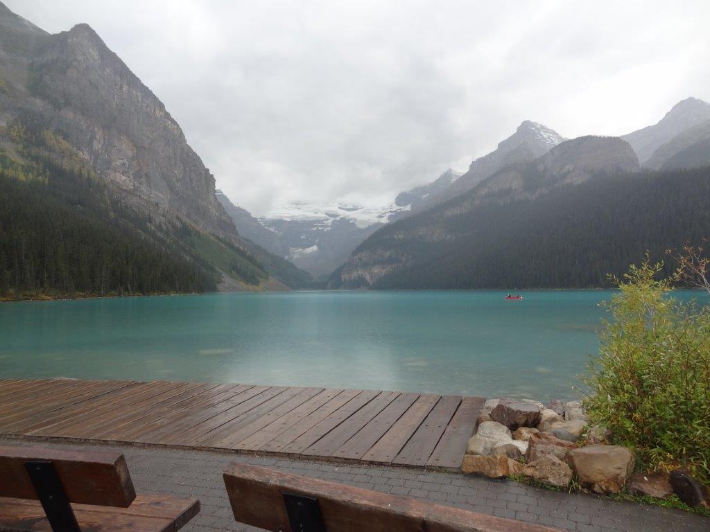 Just before you get to Banff is the very famous Lake Louise.  Jim and I had a wonderful hike and a walk along the lake years ago.  This time, we couldn’t’ stand Lake Louise.  Imagine every tour bus in the province of Alberta all converging on Lake Louise at once.  In addition, renting RVs is the Canadian Rockies is HUGE.  So lets put all those RVs there too.  That is what if felt like.  We got out of the car, walked down to the shore, took one picture, and said “Let’s get out of here.”  It was a major disappointment.