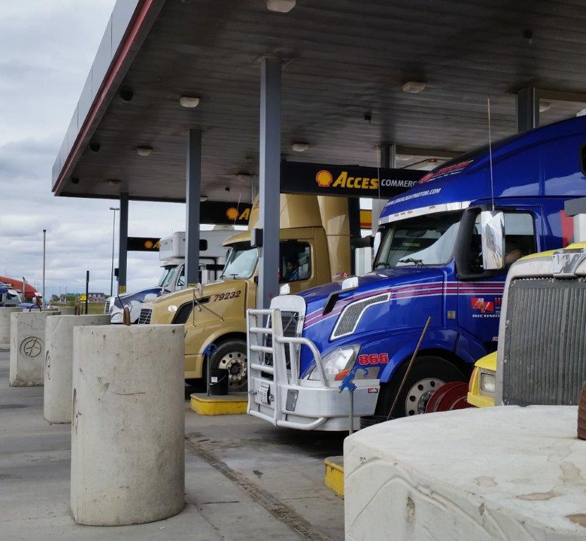 We stopped at a Truck Stop to refuel. Diesel up here is around $5 a gallon. Back home, it’s only $3.85. Ouch. Can you spot Blue?