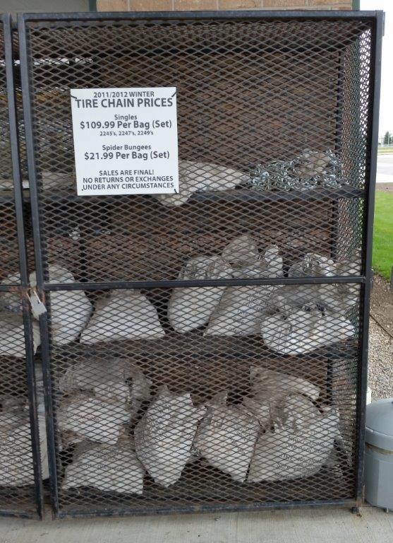 Yes, they are selling tire chains for trucks to use in the snow. This was a first! No, we didn’t buy any. If it starts to snow, we are heading further south. Although that might not always work, Calgary, south of us, got 5 cm of snow the other day. Yikes! We have been watching the weather closely and avoiding anything nasty.
