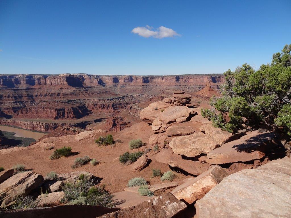 During the jet boat tour, our guide pointed out Dead Horse Point.  It was a butte way up that you can drive out to.  So that was our adventure for the following day.  We were able to see exactly where we had been the previous day on the river.