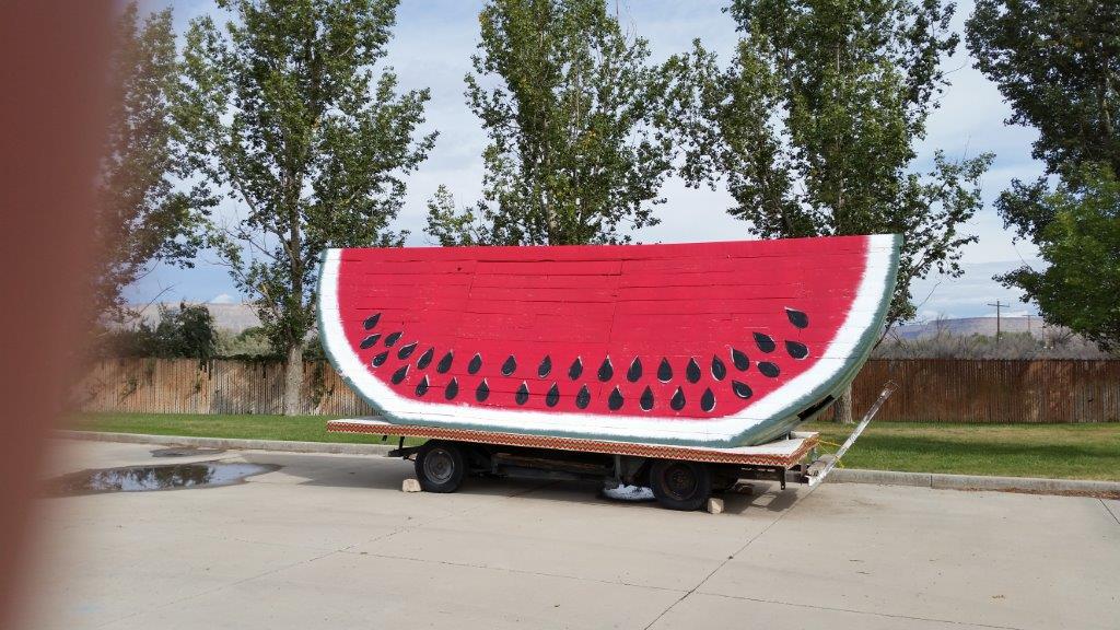 On the way to Moab, we stopped at the Visitor’s Center in the town of Green River.  How often do you see the world’s largest slice of watermelon and a Tesla Charging Station (Tesla being a pricey electric car) in the same parking lot.