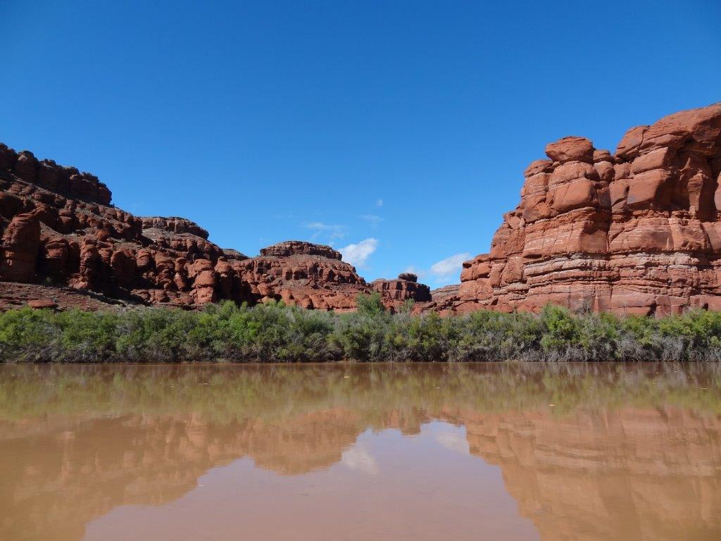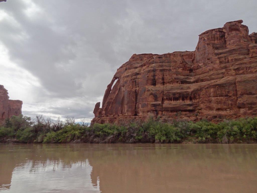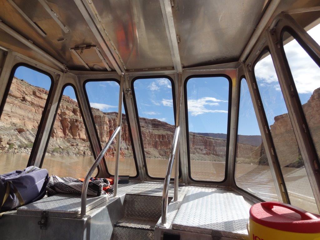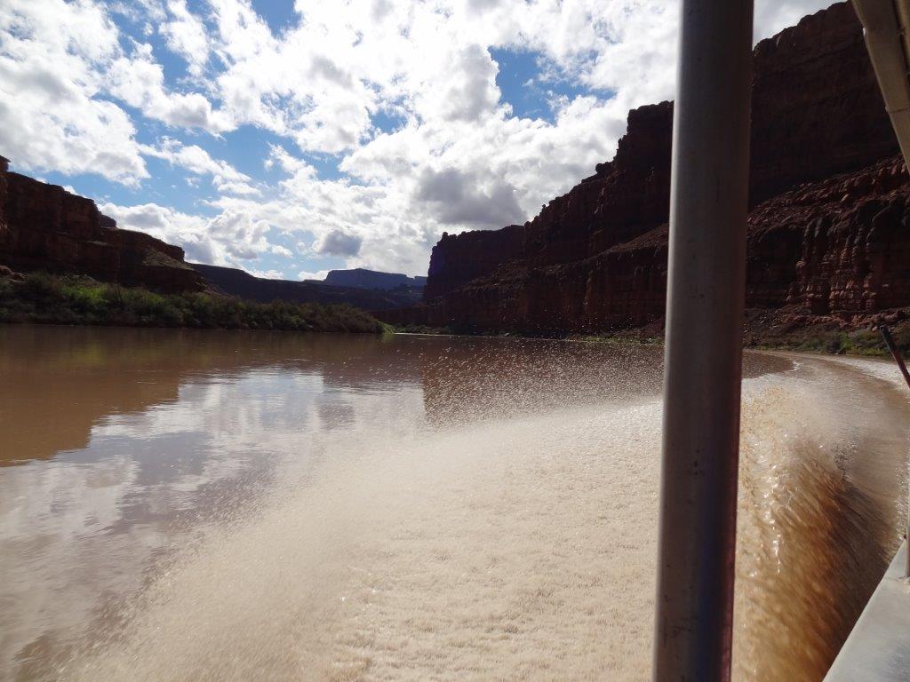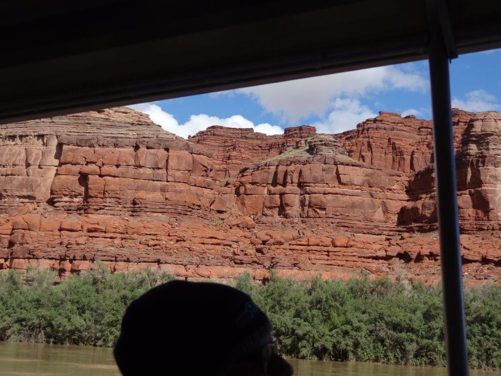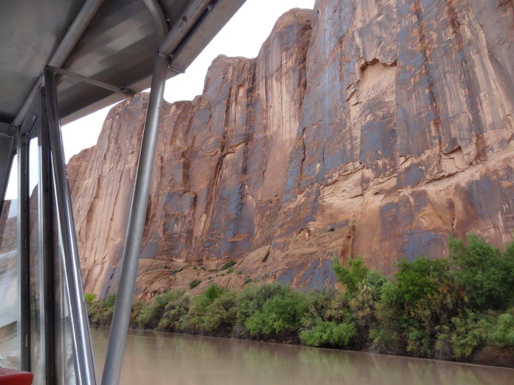 The next day, we decided to take a jet boat tour down the Colorado River.  We decided on the 3 hour, 64 mile round trip tour.  We had been looking at the Colorado River from up high.  It was kind of cool to see everything from below.  The ride started out rainy, but the sun popped out after an hour.  Again, what great scenery.  We saw the butte that Thelma and Louise drove off of (see IMDB.com if you don’t know what I’m talking about).  And we heard lots of the guide’s stories about all the movies that are made in the Moab area.  Can you imagine being being on a jet boat tour with Kurt Russell?