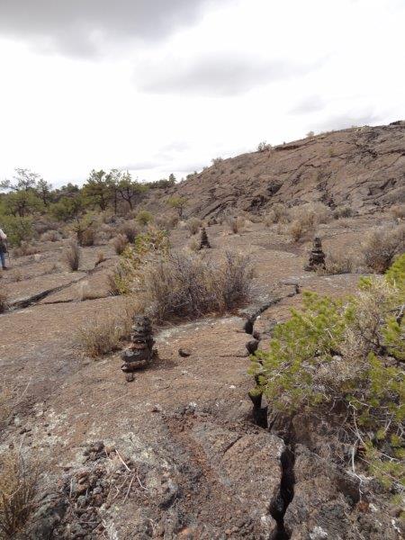 Our destination the first day was El Malpais, a field of 3000 year old lava flows.  This gave us a chance to break out our new trekking poles and try them out.  The poles held up well on our two hikes, our knees didn’t.  Ouch!