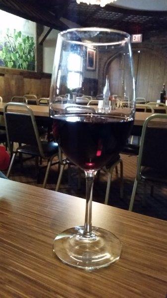 I sipped a glass of Hillside Red while waiting for our pizza.