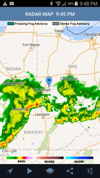 Well fed, we headed back to the RV for the evening and to watch the line of thunderstorms that were making their way across the midwest. Between the apps on the phone, the National Weather Service radar page, and our Weather Radio, we were on top of it. We had a few thunderstorms roll through, but that was it.