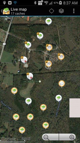 Before we left Georgia, we had one last day to relax. We read, went out for dinner, and I went geocaching. The little county park we were at had a great collection of caches. I ventured out a couple of times and found seven.