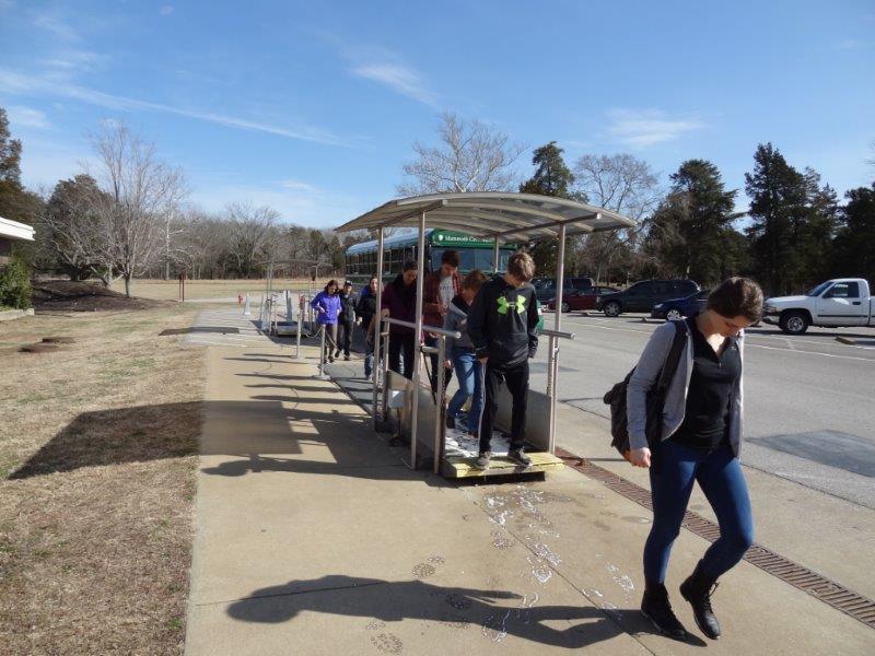 Mammoth Cave has a fungus that causes White Nose Syndrome in bats. As a result, almost all the bats that were in Mammoth Cave are dead. After your cave tour, everyone has to walk over a sudsy mat to wash the fungus off your shoes to keep from spreading it to other caves.