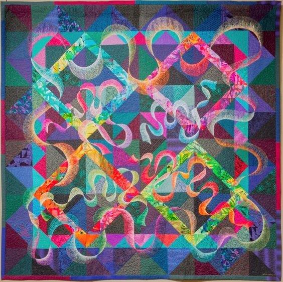 Escapade by Libby Lehman. All the “ribbons” were created by machine quilting with metallic threads, not fabric.