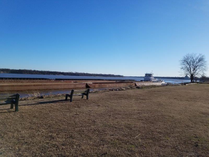 Now we are once again camped on the Mississippi River in West Memphis, Arkansas, We stopped at the Tom Sawyer RV Park last year and enjoyed it. (Read last year’s blog post here.) So we decided to stop again this year and spend a week watching the barges float by. We are going to take some time to finish getting stuff stowed in the coach, do some cleaning, and make some repairs and improvements to the RV.