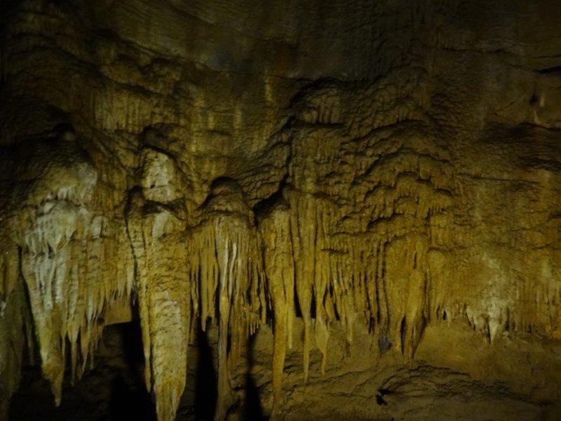 Mammoth Cave has a fungus that causes White Nose Syndrome in bats. As a result, almost all the bats that were in Mammoth Cave are dead. After your cave tour, everyone has to walk over a sudsy mat to wash the fungus off your shoes to keep from spreading it to other caves.
