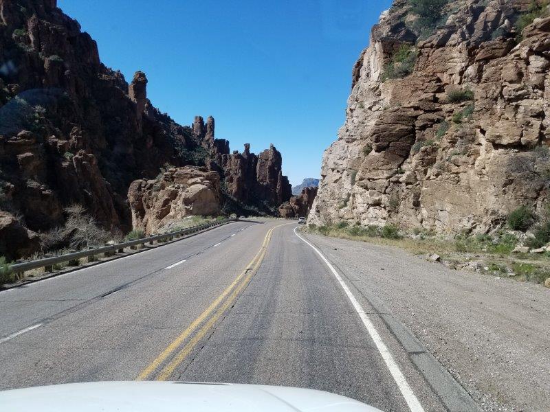 Taking the scenic route to Phoenix. A tunnel marked 13′ 3″ in height on the map almost gave us a heart attack when we noticed it (we are 13′ 4″). But the tunnel was 13′ 6″ when we got there. Jim was all set to dump the air out of the RV suspension so we could squeeze through. Phew. We need to pay better attention!