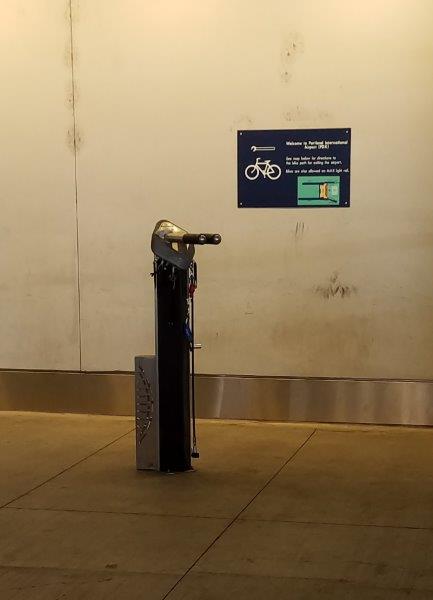 And here is the bike assembly area. You put your bike back together on this stand. And they have compressed air to inflate your tires!