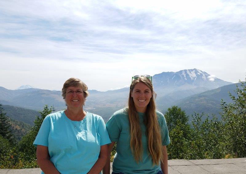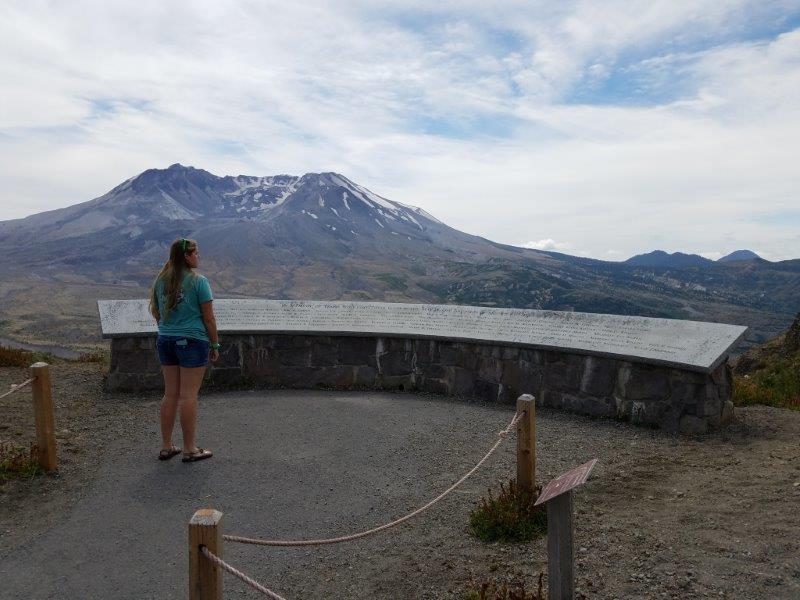Mount St. Helens in the background. The whole north face of the mountain, which you can see here, was blown off when it erupted in 1980.