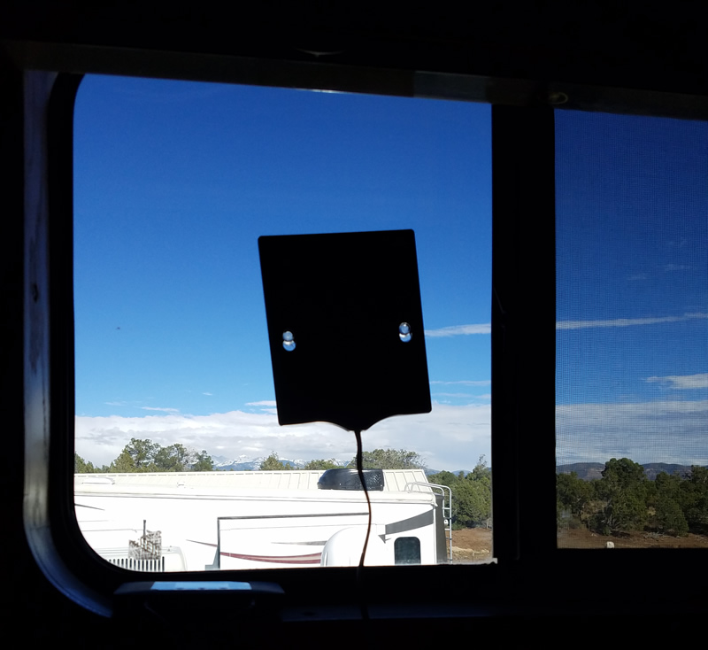 The antenna sticks to a window with suction cups. This antenna is magic! It pulls in cell signals that you didn’t know were out there!