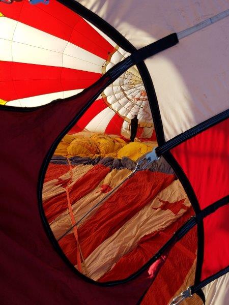 Once the balloon is cold inflated, Mark climbs in the basket and starts the propane burners. The balloon fills with hot air and can then “stand up.” For the crew, it’s time to do “weight on.” That means you use your body weight to keep the balloon on the ground. You have orders that if your feet leave the ground, you need to let go.