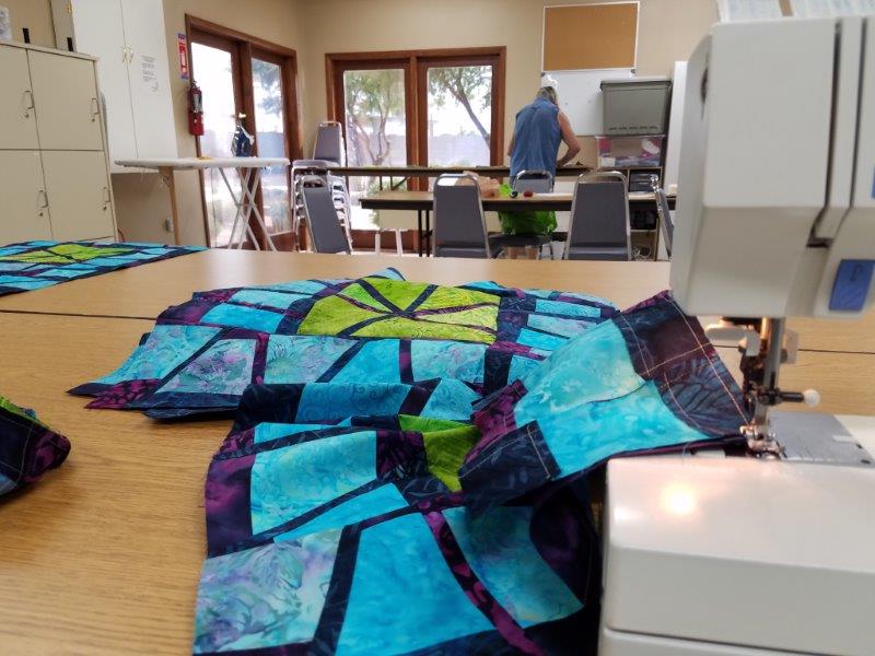 Next we were off to Phoenix. We had been given a gift certificate at the Spring FMCA Rally to spend 3 free nights at a Cal-Am RV Resort. We chose the resort in Gold Canyon, east of Phoenix. Again, it was quiet time after a week of hustle and bustle at my Dad’s. The resort has a wonderful sewing room there, so I made some new friends, got the scoop on some quilt shops, and finished up two quilt tops!