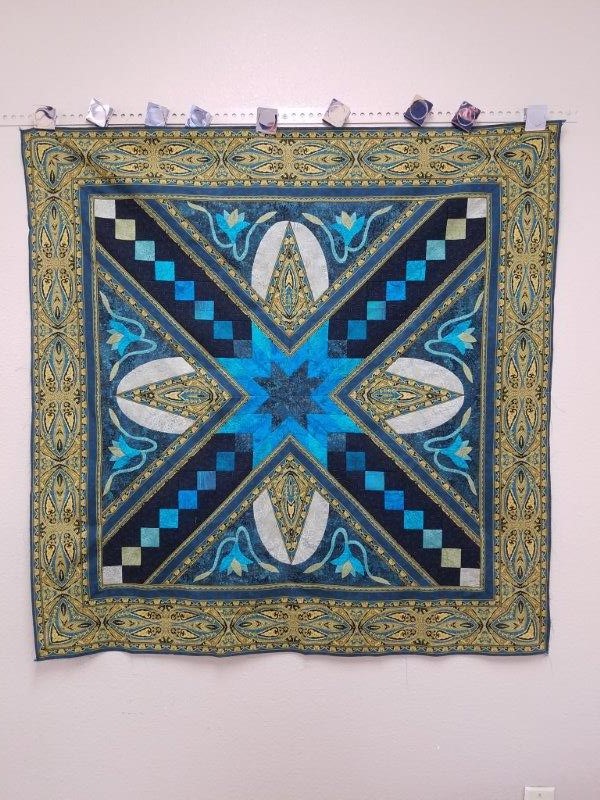This wall hanging was a Jinny Beyer mystery quilt. It was started last spring and finished up just this month. It was my first time doing hand applique and working with border prints. Is it perfect? No. But I’m happy with it!