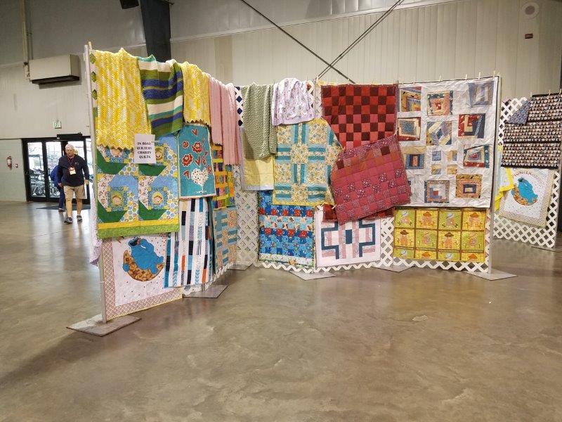 After the quilting seminar, all the donated quilts are put on display in the main lobby for others to see.