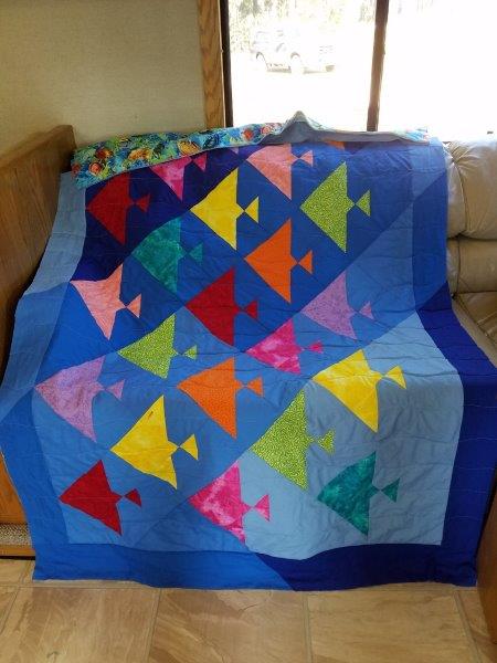This is a charity quilt I’m pushing to get done this week. Janelle’s Graduate Student Association is going to use it to raise some funds. Since the school is full of ocean water type majors, fish seemed appropriate.