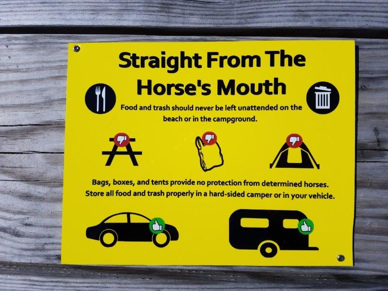 People approaching and feeding the horses is a problem. And horses are no different than bears, if you leave food out,they will find it. These signs were affixed to the picnic tables in the campground.