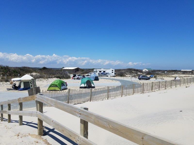 Our sweet camping spot at Assateague State Park. We are only a dune away from the beach and the Atlantic Ocean. It’s dry camping (no hookups), but no worries. Our solar panels performed admirably, charging up our batteries every day. Note the lack of people when we arrived on Wednesday. We had the whole loop to ourselves until…..