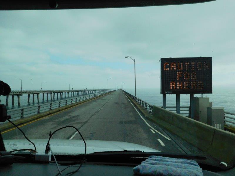The Chesapeake Bay Bridge Tunnel (CBBT) was something we researched. We knew Paul and Kay used it successfully last fall. But our RV is taller than theirs. The maximum height is 13′ 6″. We are 13′ 4″. Phew, we make it by two inches.