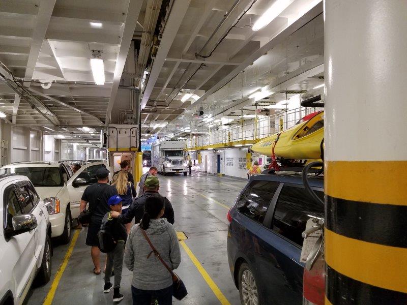 All aboard! I drove the Jeep onboard before they let Jim and the RV on. The Blue Flame was hard to miss!