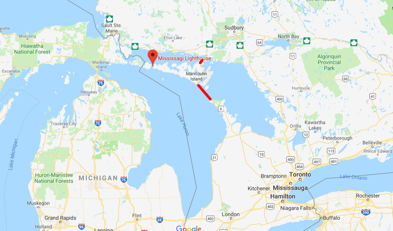 Where IS Manitoulin Island?  It’s forms the barrier between Lake Huron and Georgian Bay.  The ferry ride to get to the Island is the longer of the 2 red lines.  The bridge to leave the Island was the shorter of the two red lines.  We stayed at the red pin drop.  If we didn’t take the ferry, we would have had to drive all the way around Georgian Bay, north of Toronta.  We’ve done that before.  It was time for something new.