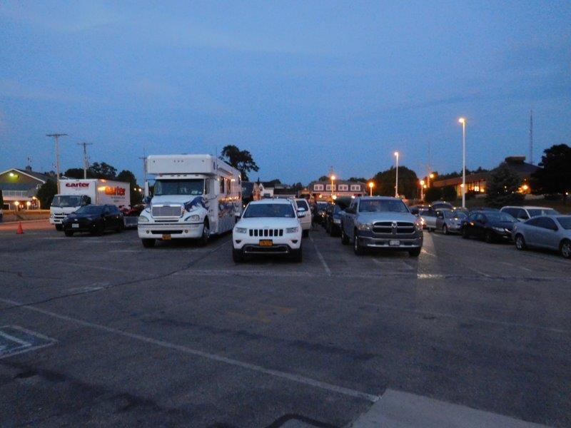 It is cheaper to unhook your car from the RV, so you see the Jeep and the RV separate. Your overall length is shorter thus saving you money. We were the first ones in line that night, especially since we had to wait till 8:00 pm to get in line. Vehicles trickled in all night to also get in line. A lot of people slept in their cars. I bet we were more comfortable than most!