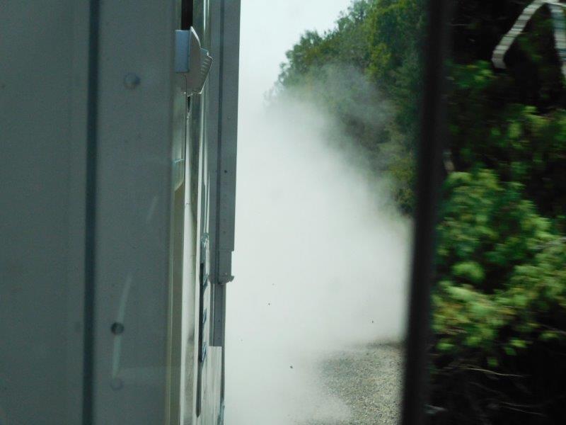 I took a picture of the dust cloud we kicked up via the side mirror of the RV.