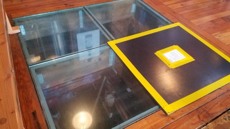 There are windows in the floor to view the sea lions under the pier!  Wait…what’s that yellow sign about?