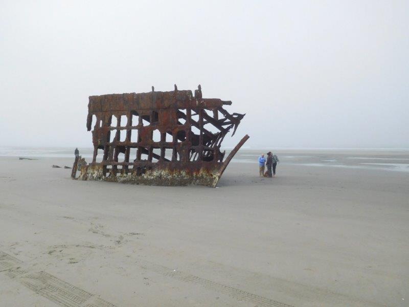 Within Fort Stevens State Park where we camped, one of the beaches has what is left of the ship Peter Iredale.  It ran aground in 1906.