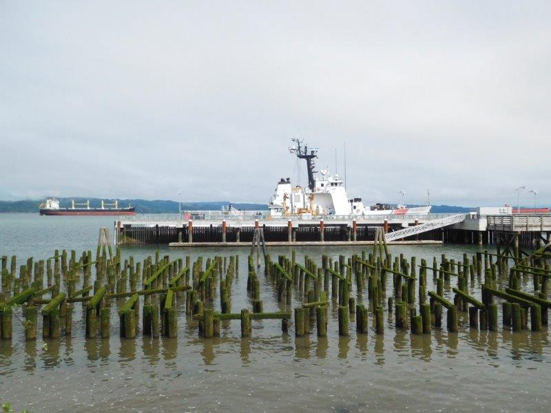Docked in the town of Astoria is a Coast Guard Cutter.  The town used to be totally on piers over the water, not so much any more.  But a lot of the pier uprights remain.