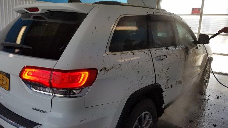 And here we are, back at the same car wash where I lovingly cleaned the Jeep just three days ago. It took $10.50 of quarters to get all the extremely sticky mud out of the wheel wells, the tires, and off the car itself.
