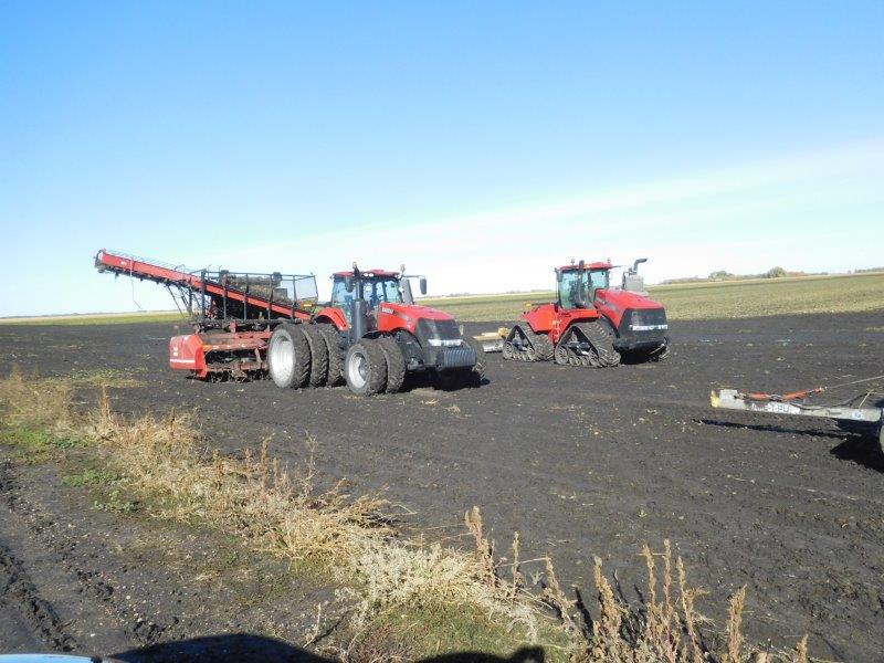 Jim turned down the lane they used to get on and off the field. I was busy snapping pictures of the equipment on the field. Beet lifter in foreground, scraper tractor behind that, you can just see the “business” end of the pull tractor. The device sticking out is what they use to latch onto and pull trucks when they loose traction.