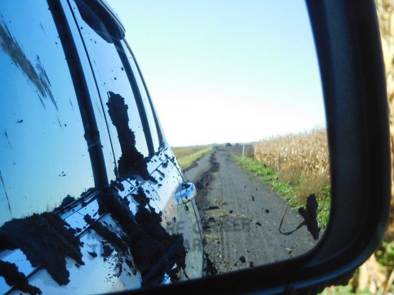 The passenger side definitely got the most mud. The wheel wells were packed with mud. The car shimmied and shook all the way back to Grand Forks with mud packed the tires.