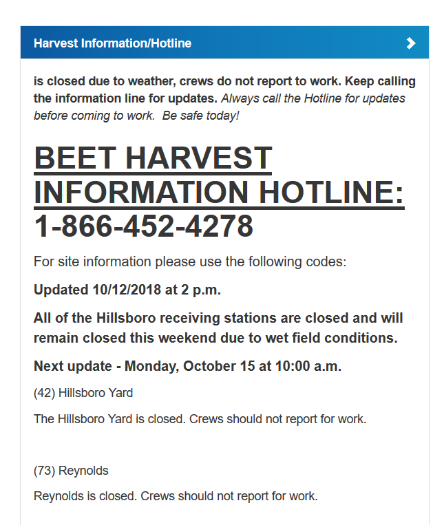 And we wait…until 10:00 when American Crystal Sugar will update the status of the harvest on their website.