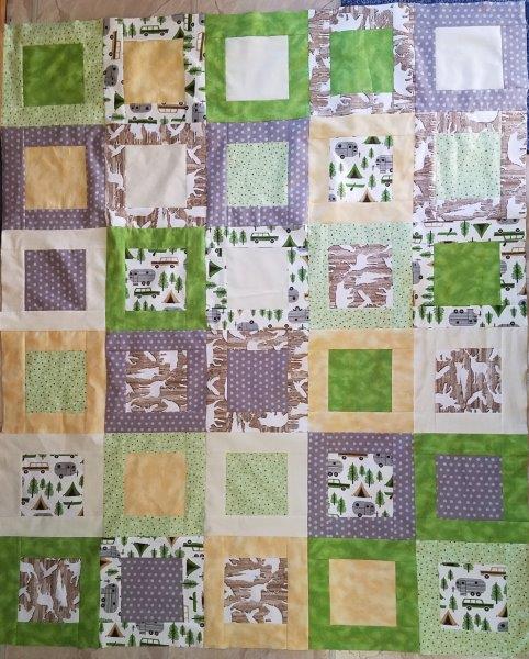Having still more time on my hands in Grand Forks, I found this flannel fabric with campers on it. I also spotted a picture of this simple quilt. Bam, another quilt done. This one I am going to donate to an auction in January at Quartzsite to raise funds for a care facility for full-time RVers who are unwell.