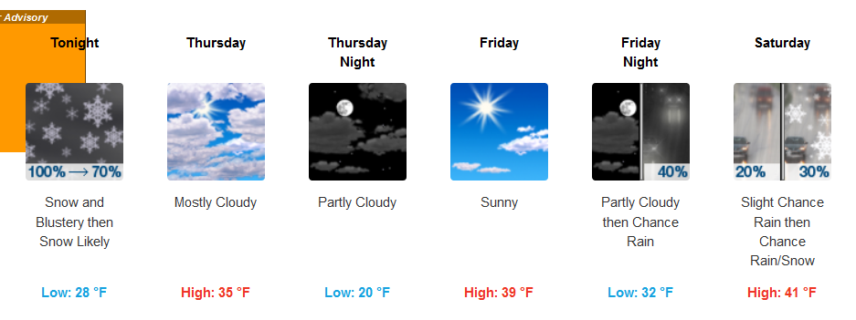 Do you see that forecast temperature for Thursday night? 20 degrees! Temperatures that cold can cause problems with an RV’s water system. Our outside tanks have heaters, plus they are full. It will take more than one night of cold to freeze a tank full of, um, poop. But the water lines are more of a concern. Jim has wrapped them with heat tape and we have purchased a small space heater for the basement compartment with the exposed water lines. We should be OK.