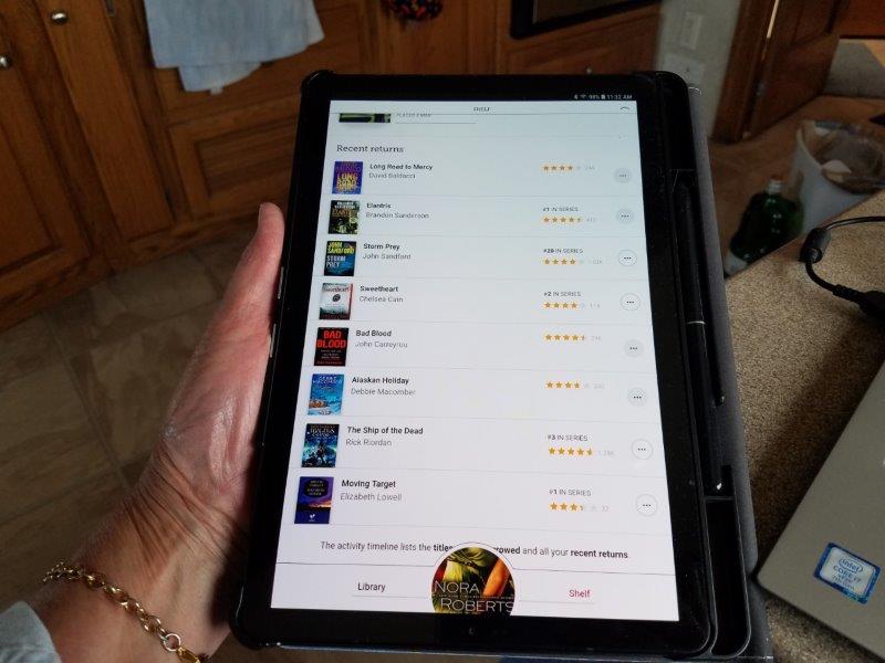 Here’s a shout out to the Libby app that runs on our tablets. Jim has been checking a lot of ebooks out of our library back home.