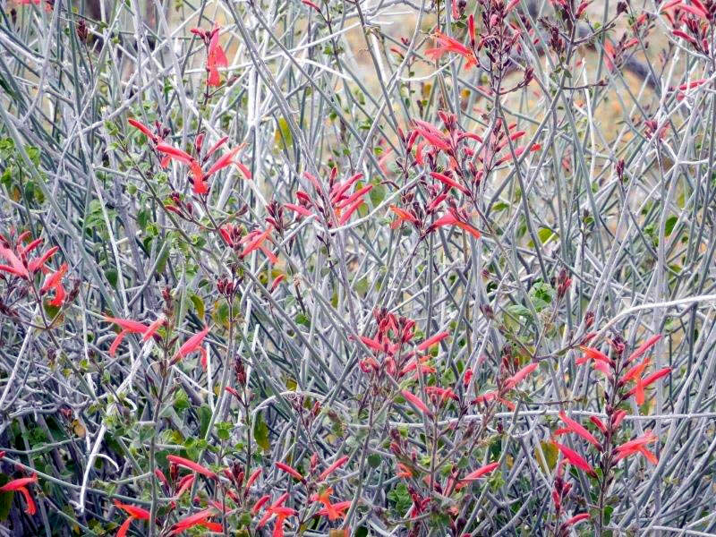 A hummingbird bush just starting to bloom. Some of our RVing neighbors here on the BLM land have hummingbird feeders out. They are VERY popular with the migrating hummingbirds.