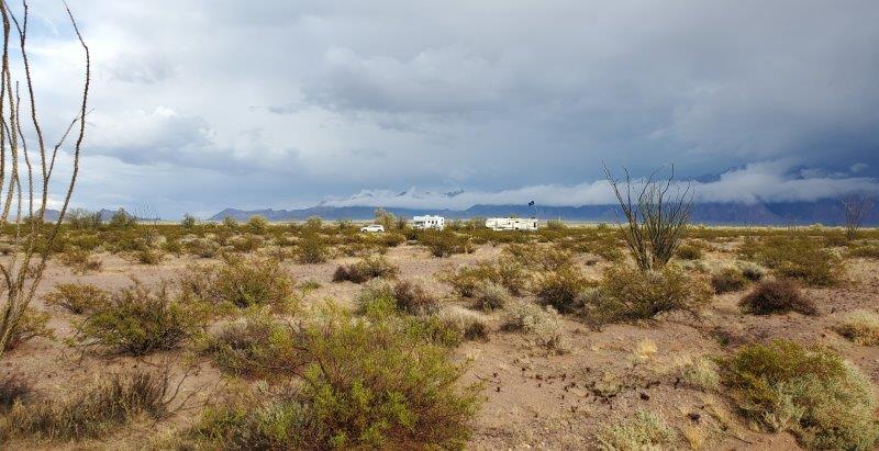 Wade took this shot of our rigs and the storm clouds. Very cool!