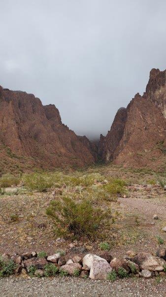 This is Palm Canyon. If you hike up there, you will find palm trees natively growing there. Alas, the rain and our short stay kept us from hiking.