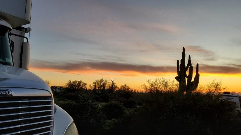 Our next stop was Lost Dutchman State Park in Apache Junction, Arizona (just east of Phoenix). Our full-time RVing friends Dan and Amy had told us that they were going to be there and their site number. Lost Dutchman is a VERY popular state park. When we checked the online reservation system, there was one site available in the entire park…and it was NEXT to their site. It was as if it was preordained, we had to join them. We didn’t tell Dan and Amy we were coming, but they sort of suspected that was the case. Sure enough, when they pulled in, we were there to greet them.
