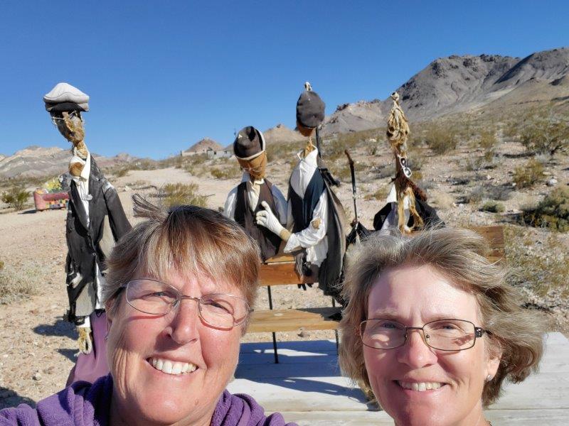 These are puppets from the Speeltheater in the Netherlands. The puppets are intended to decay in the desert environment. Viewers are asked to take a selfie with the puppets and email it to the theater. So, here are Amy and I with the puppets!