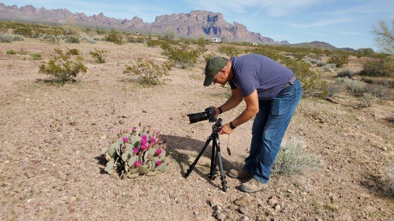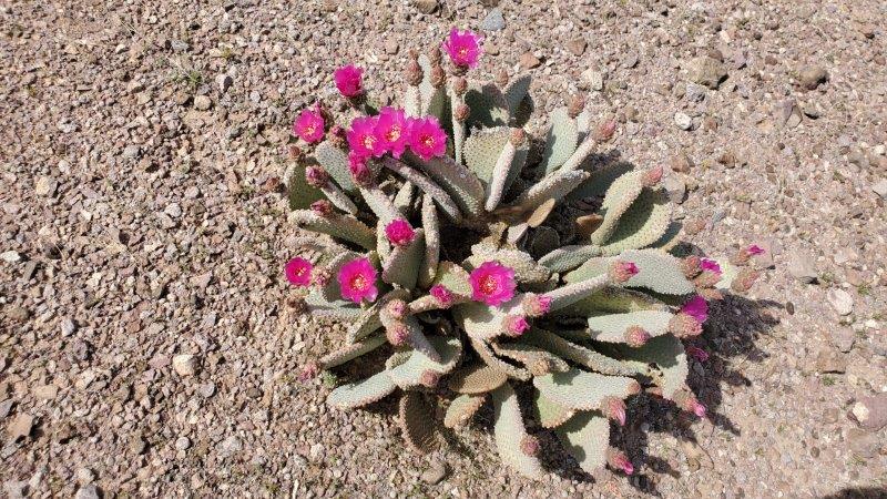 I have been doing some sewing. So has Amy. If you need to do any ironing, you have to make sure it’s a sunny day so your batteries can charge on solar and keep up with the iron.Dan is an avid amateur photographer. He spotted a beavertail pricklypear in bloom. Out came the camera and the tripod.Here’s my lame photo of the cactus. I can guarantee Dan’s photo will be much better!