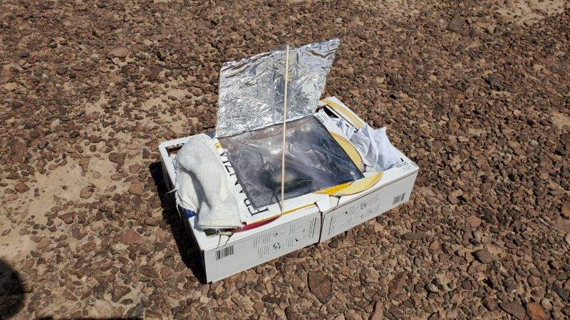 In this short blog post I’ll just detail a few more things we did to entertain ourselves during those 18 days of self isolation. Have you ever tried to make a solar oven? We decided to give it a try. Some googling found you could easily make one with a box, aluminum foil and plastic. Hey…we can make this work!