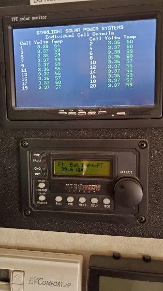 So now what? It doesn’t fail. Grrrr!!! So I try different conditions. We had freezing temperatures naturally so that was checked. Put a heater in the compartment and got everything hot. The installer had me reprogram the charge profile to stress the system and various other changes. Nothing. Nothing. Nothing. System working as it should. Of course every one of the tests took a day or two as the batteries had to go through charge/discharge cycles to exercise them as if in use. Slow and frustrating.